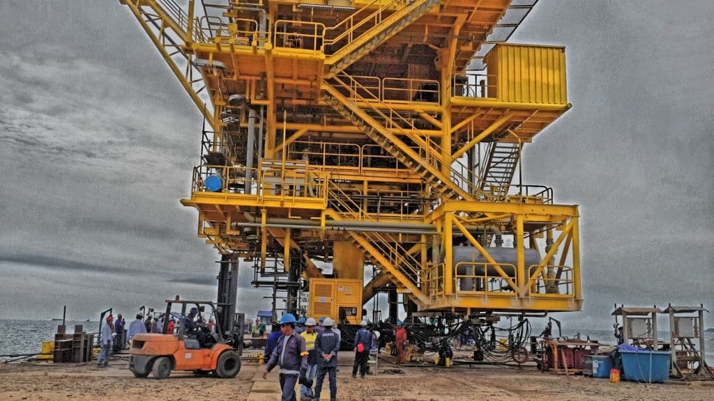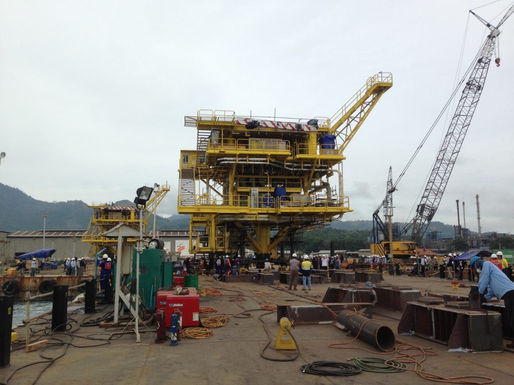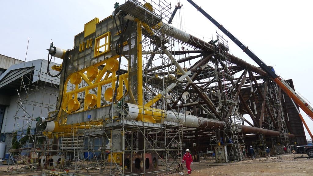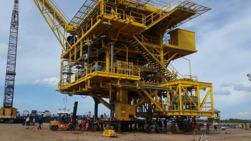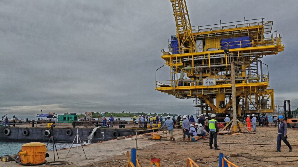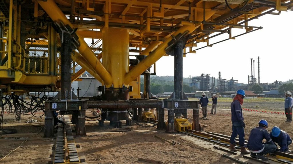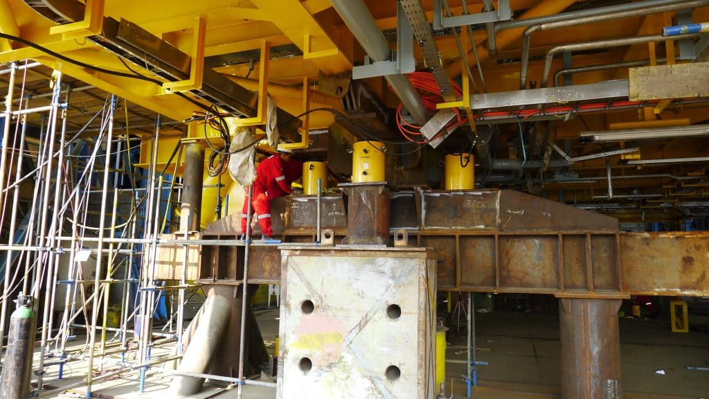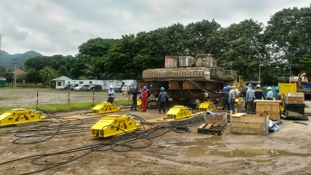 Menentukan Titik Pusat Gravitasi dan menimbang struktur rig offshore (Minyak&Gas) menggunakan High Tonnage Hydraulic Jack