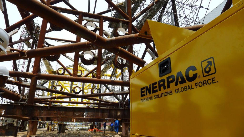 Compact ENERPAC Hydraulic Gantry used to lift heavy structure