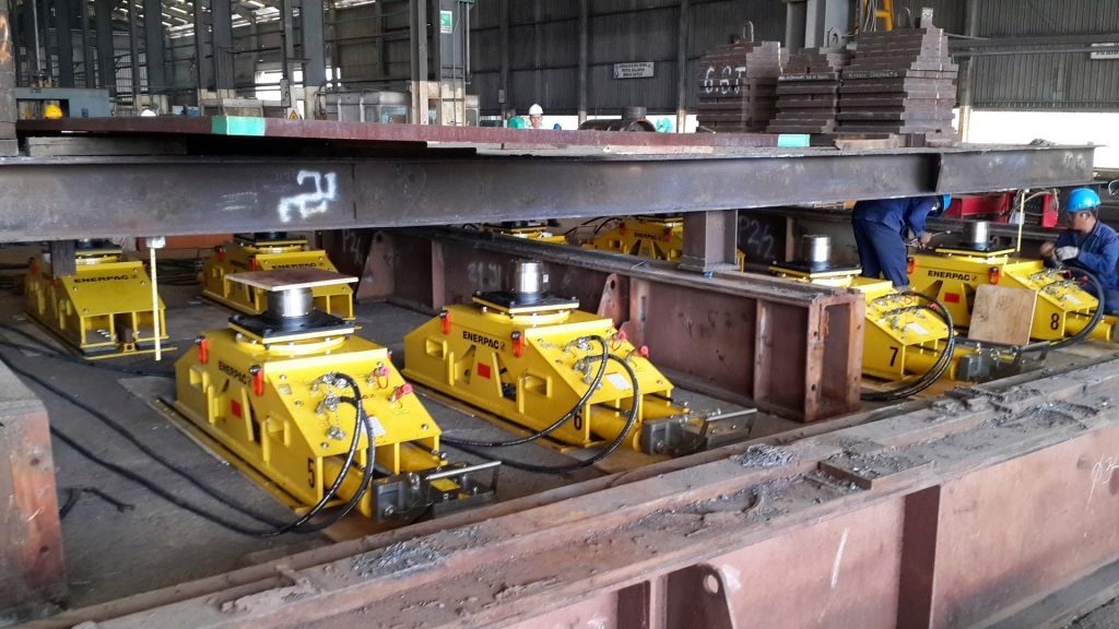 Compact ENERPAC Hydraulic Gantry used to Lift Heavy Structure